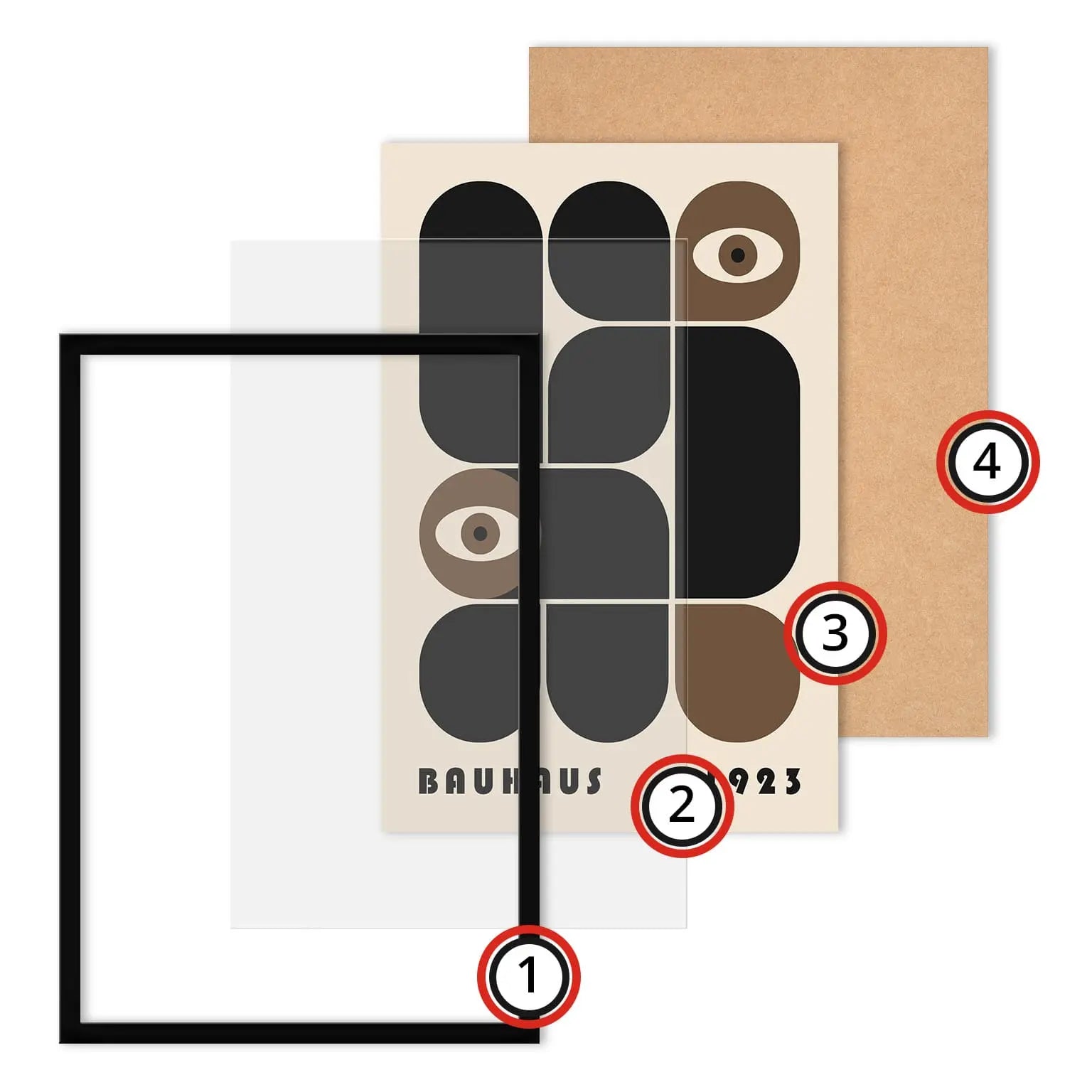 Die Unterseite jedes Rahmens ist so angepasst, dass kein Staub und keine Feuchtigkeit eindringen können. Sie sind widerstandsfähig, solide und elegant und werden fertig zum Aufhängen geliefert. Unsere Herstellungsprozesse, Rohstoffe und Versandverpackungen wurden alle unter Berücksichtigung der Umweltaspekte ausgewählt und garantieren die Sicherheit Ihrer Bestellung während des Transports.