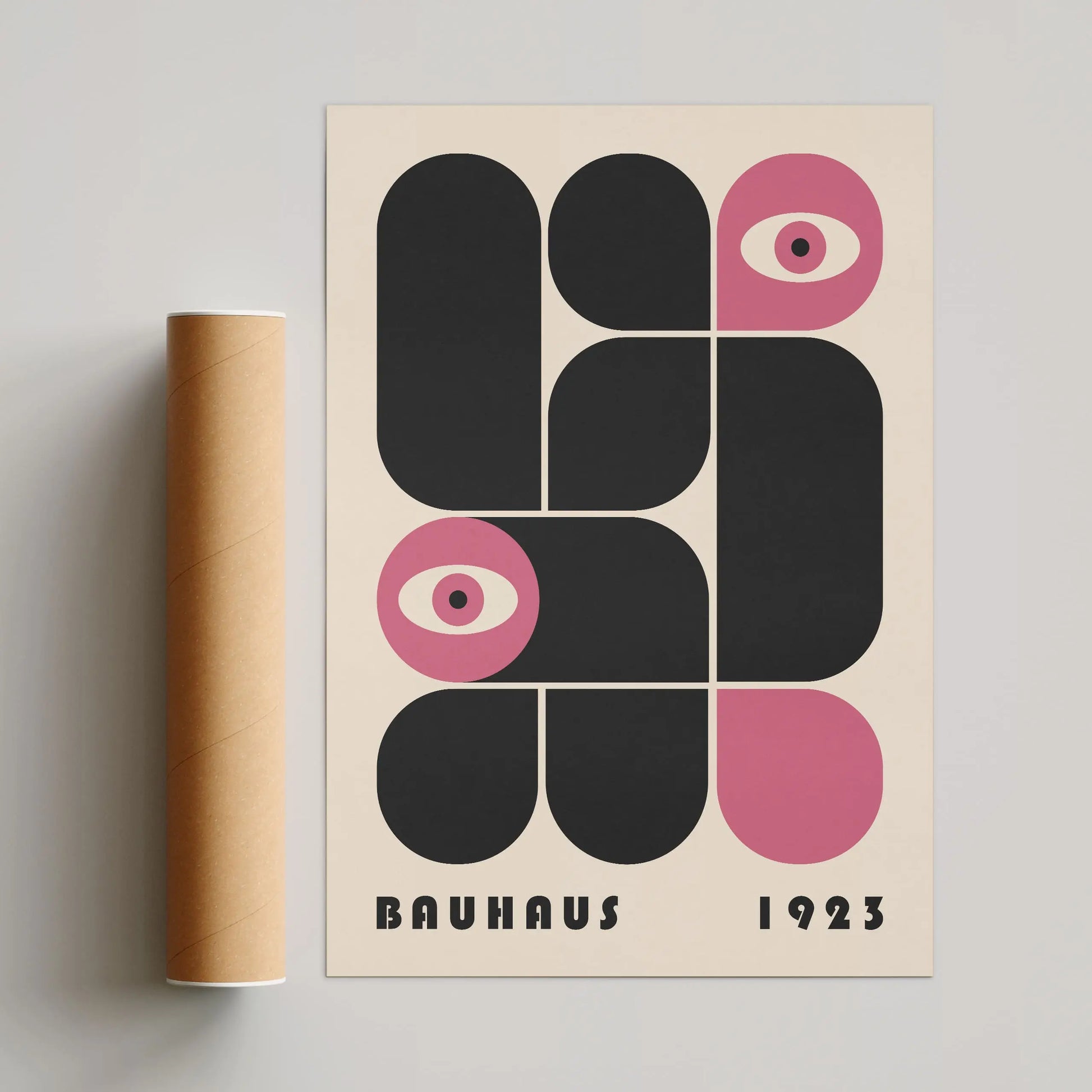 Rosa Vintage-Grafikplakat im Bauhaus-Stil