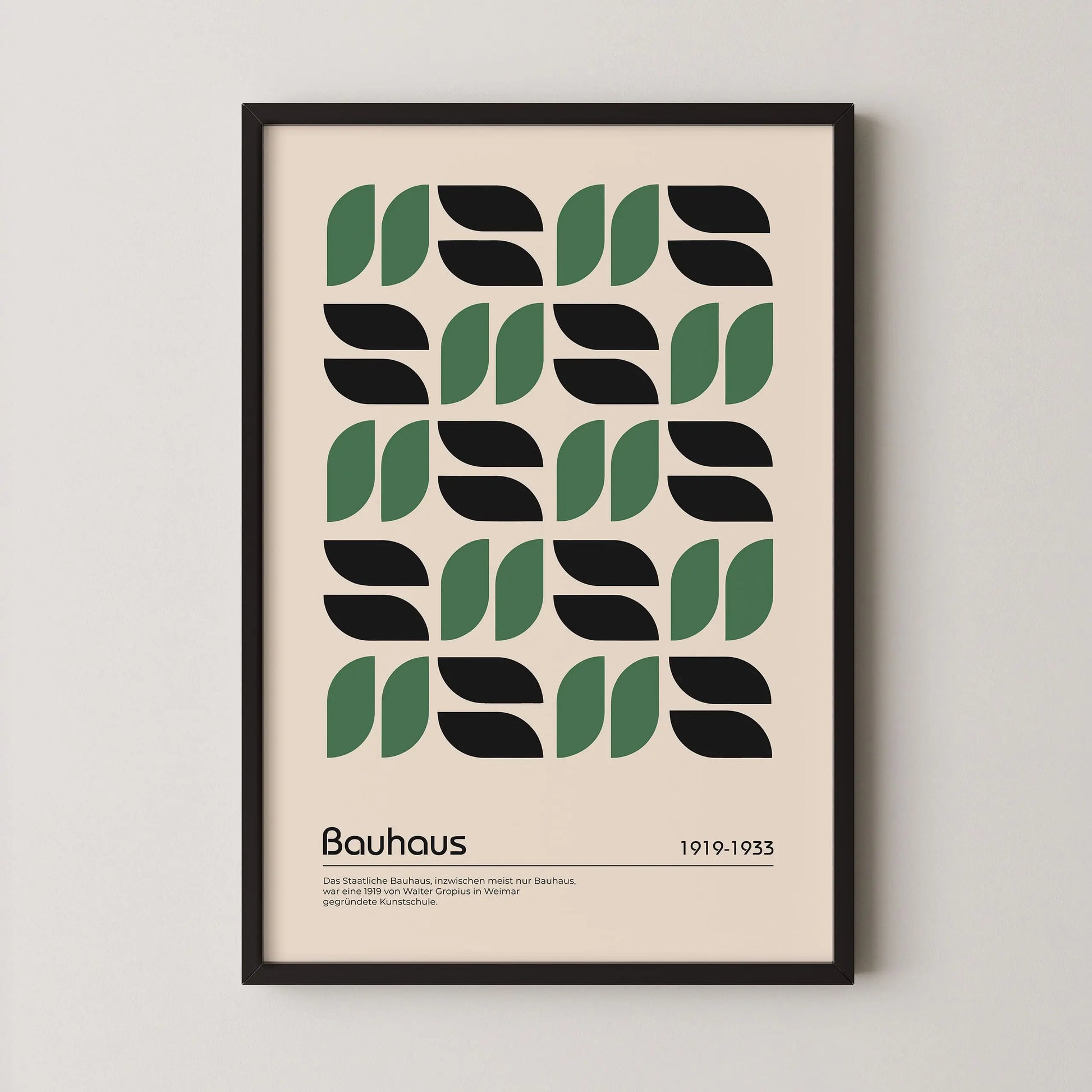 Dieses grüne Bauhaus-Poster besteht aus einem Muster kariertes Blech, wiederholt in entgegengesetzter Richtung auf beigem Hintergrund.
