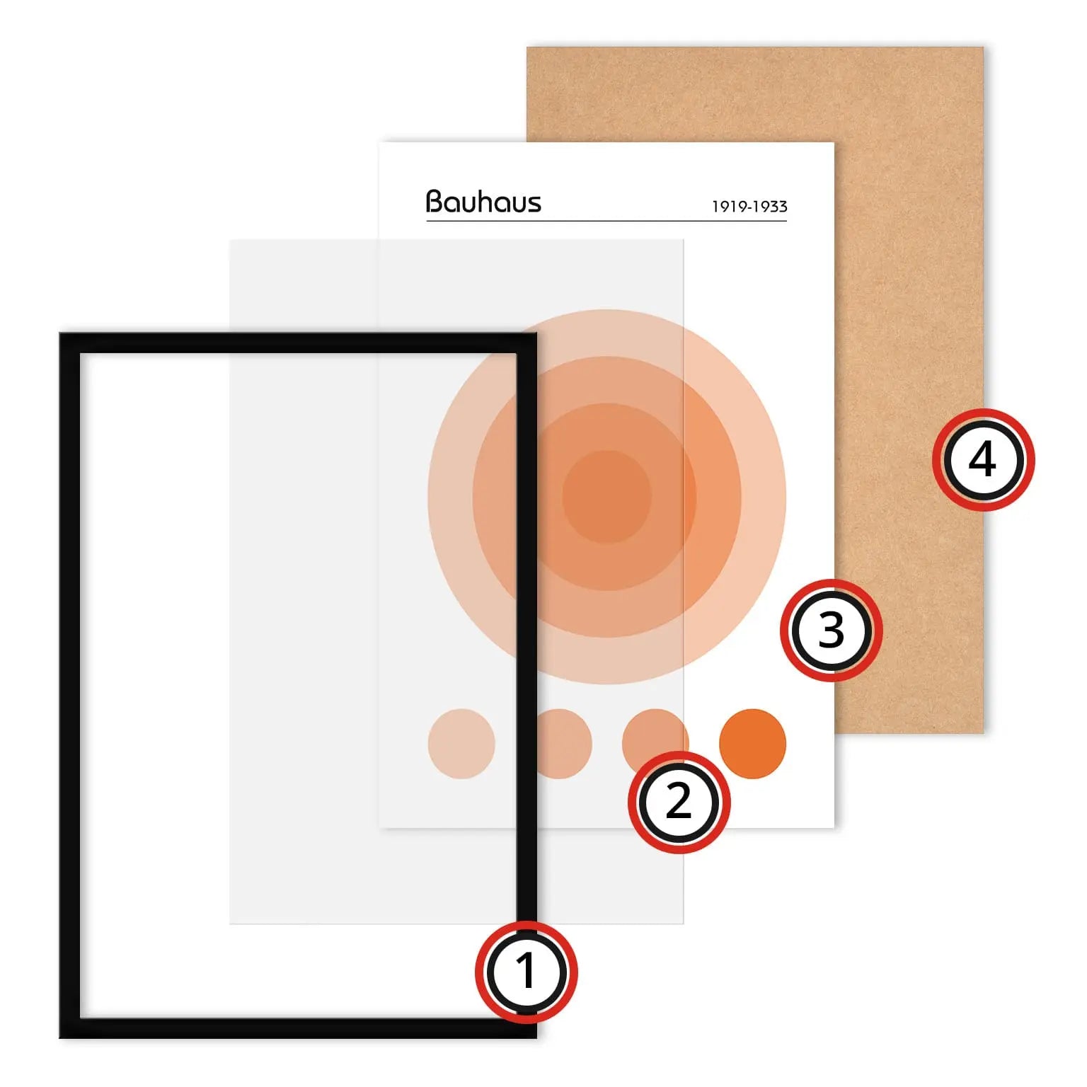 Our high-quality, heat-treated acrylic glass offers clarity equivalent to traditional glass and secure protection for your art posters. More resistant thanks to its characteristic flexibility, it is also 50% lighter, easier to handle and hang on all types of walls. Chemically produced from synthetic fibres, it filters out most of the natural ultraviolet rays, preserving the vibrancy of the colours of your works over the long term.