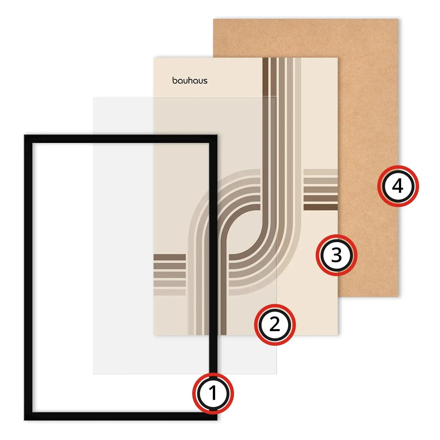 Our high-quality, heat-treated acrylic glass offers clarity equivalent to traditional glass and secure protection for your art posters. More resistant thanks to its characteristic flexibility, it is also 50% lighter, easier to handle and hang on all types of walls. Chemically produced from synthetic fibres, it filters out most of the natural ultraviolet rays, preserving the vibrancy of the colours of your works over the long term.