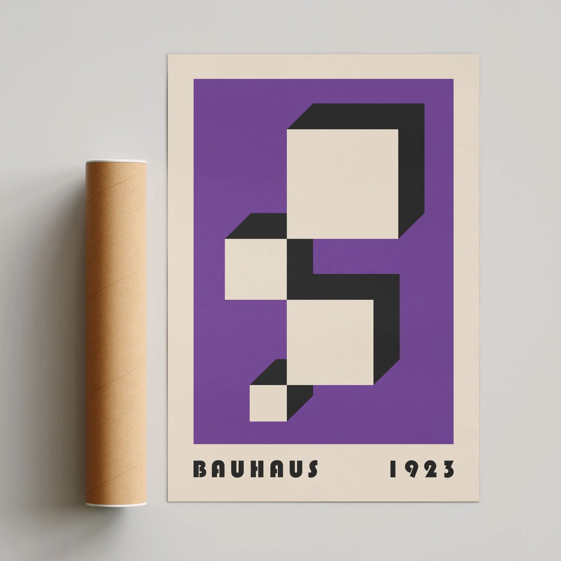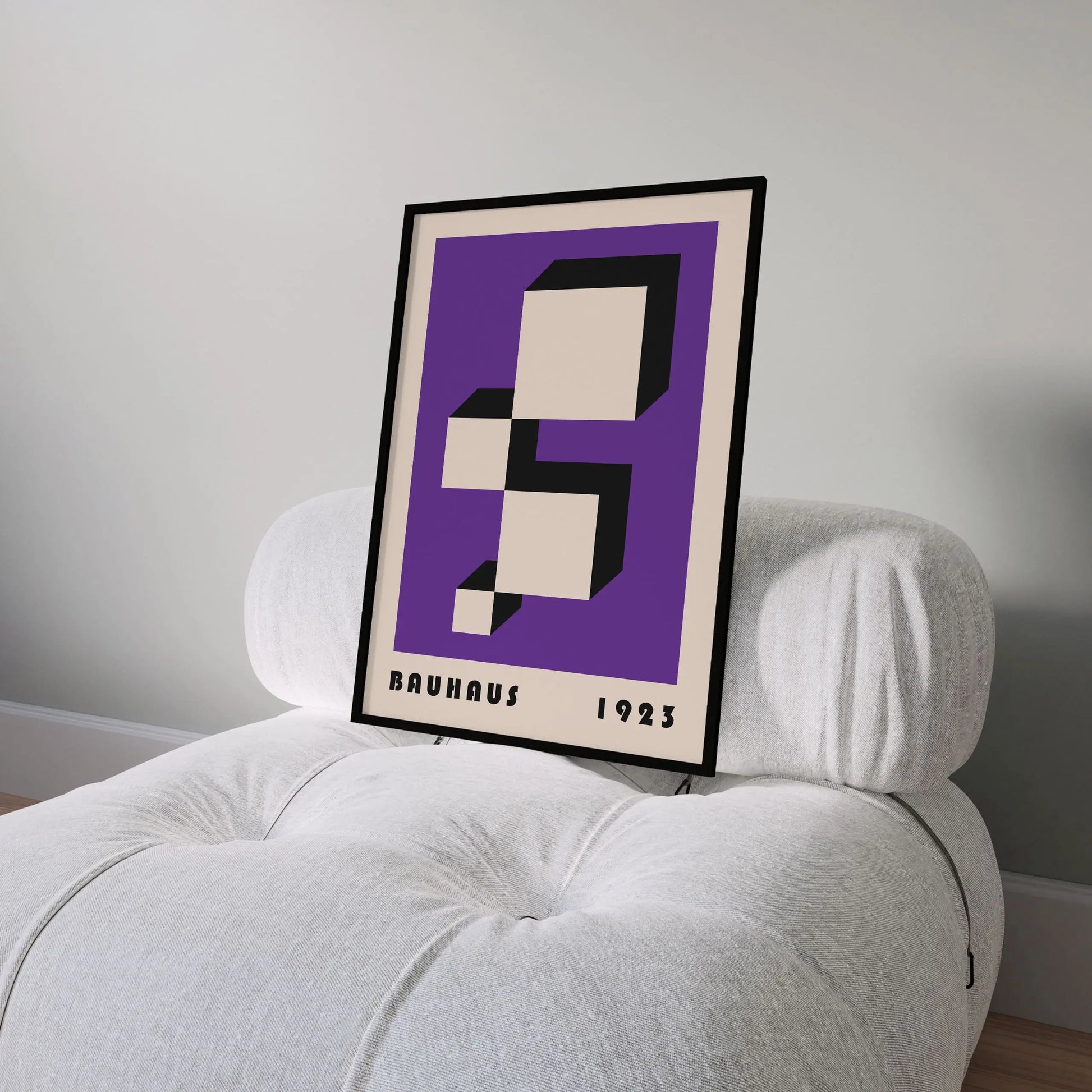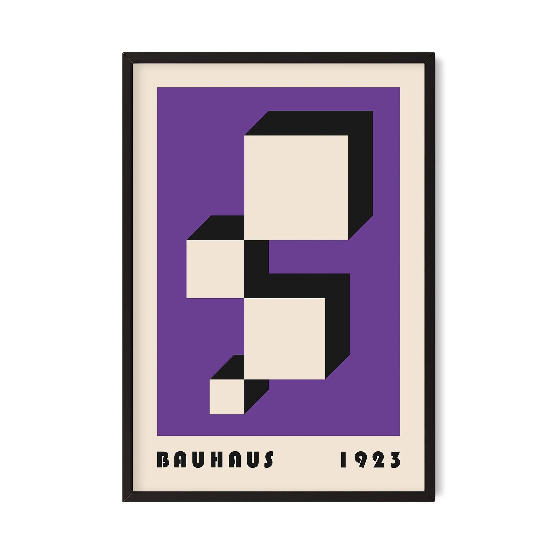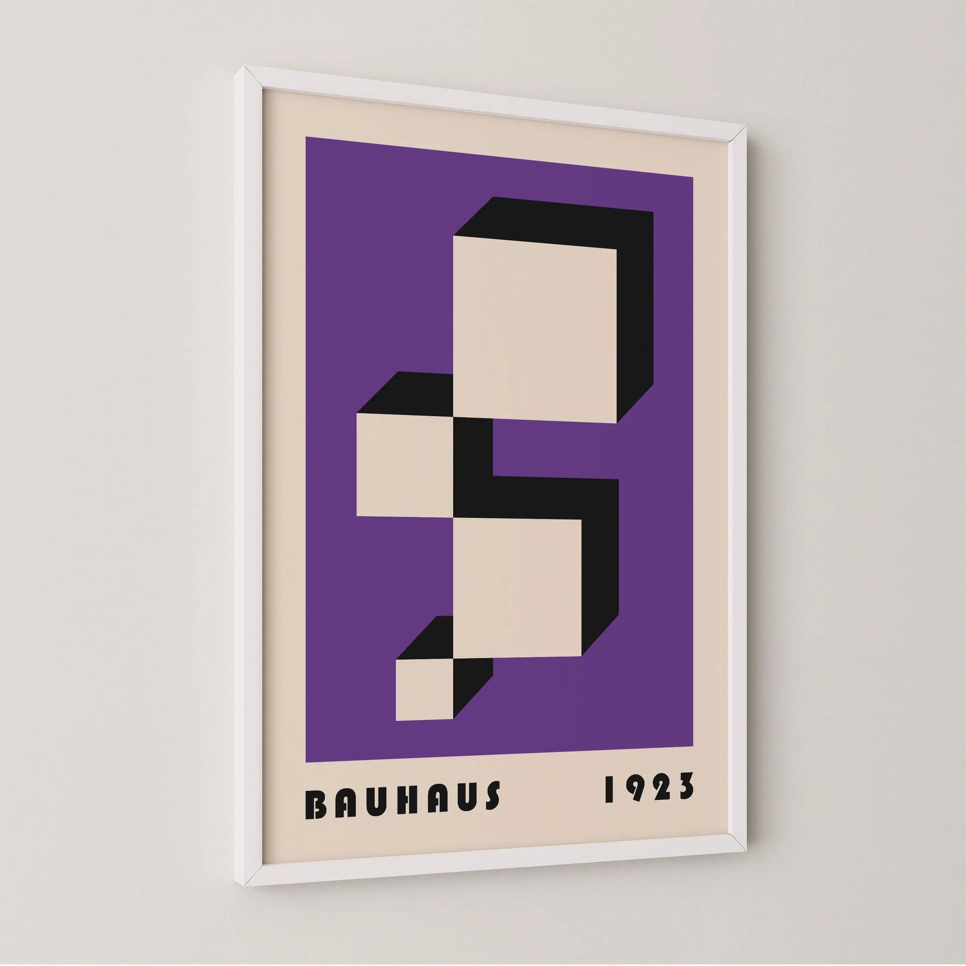 This poster Vintage purple Bauhaus is composed of squares placed diagonally in perspective on a beige background.