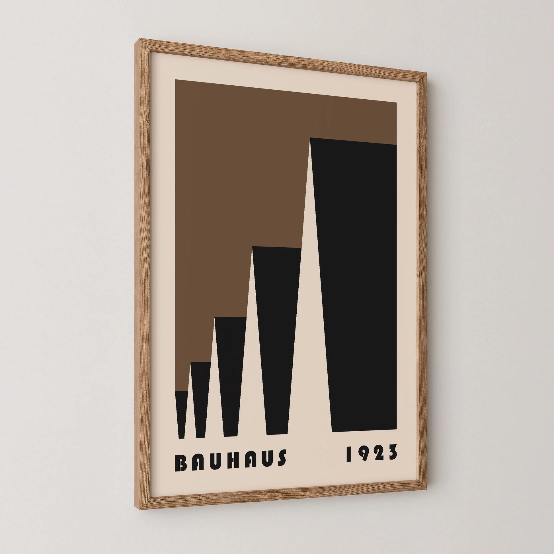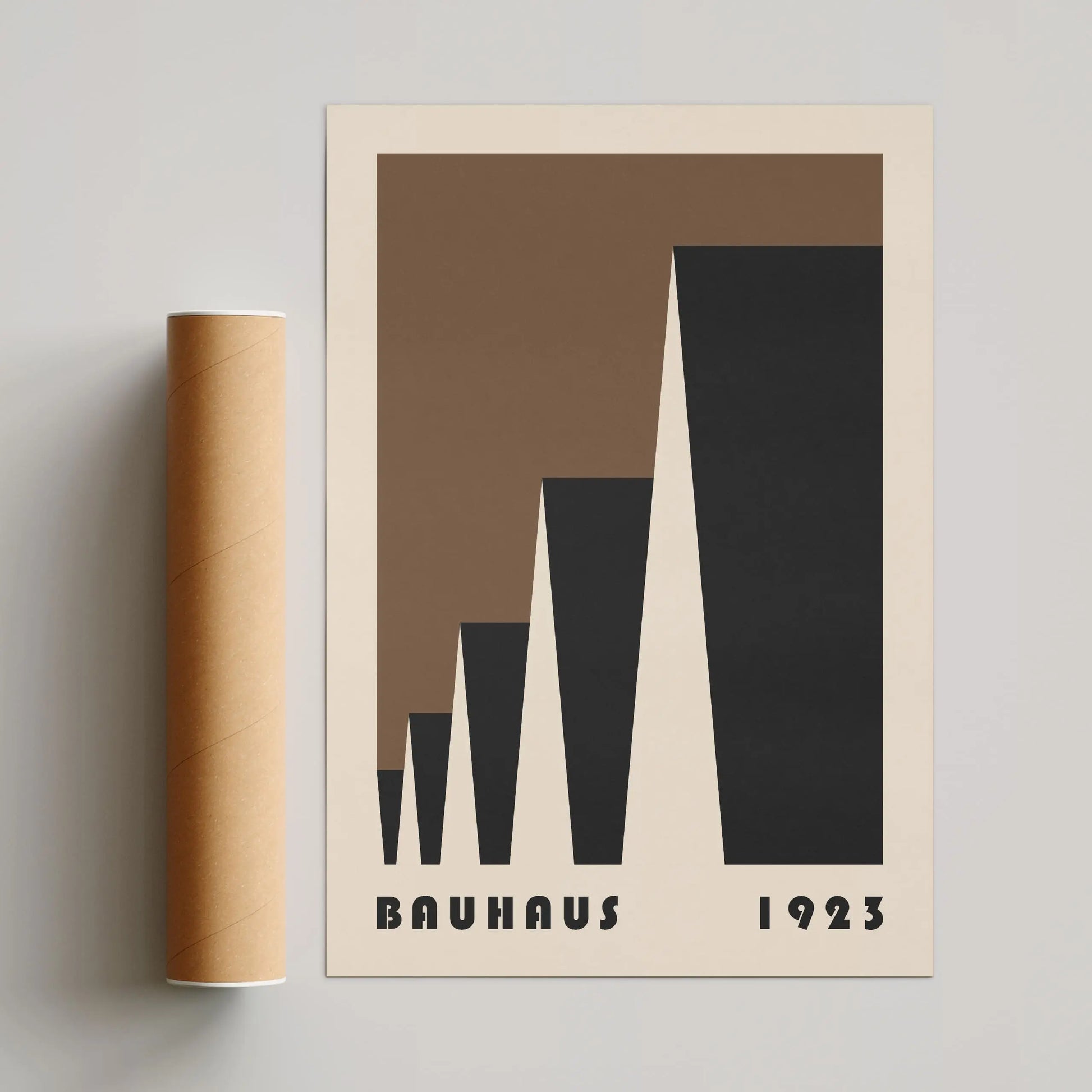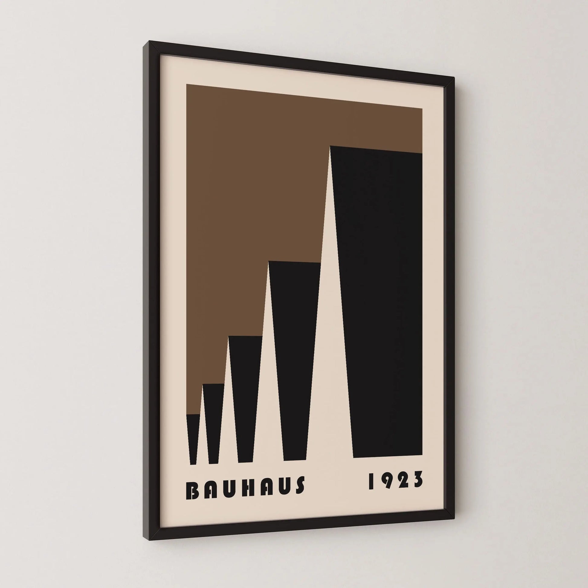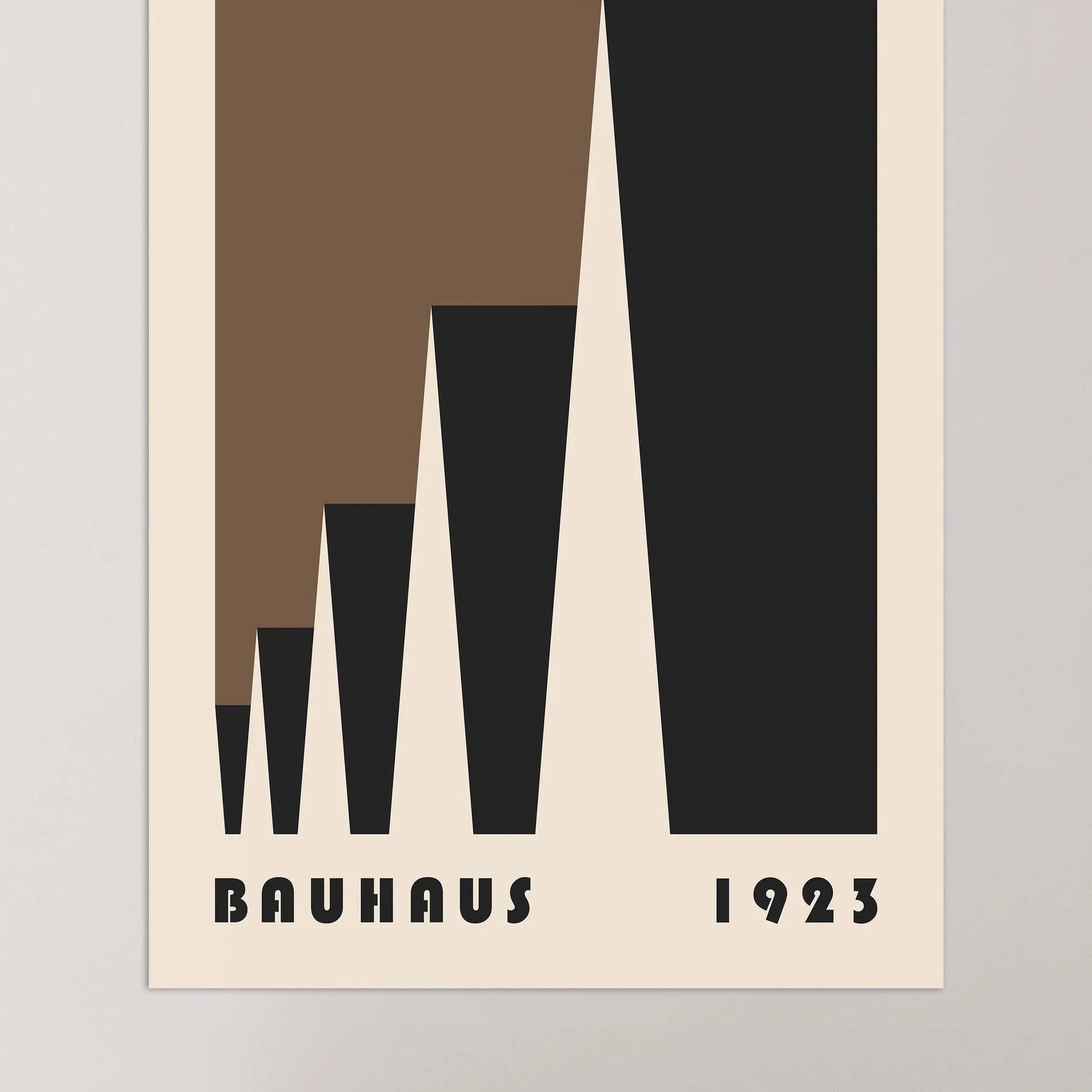 This poster Vintage brown Bauhaus color is composed of triangles put into laterally perspective on a beige background.
