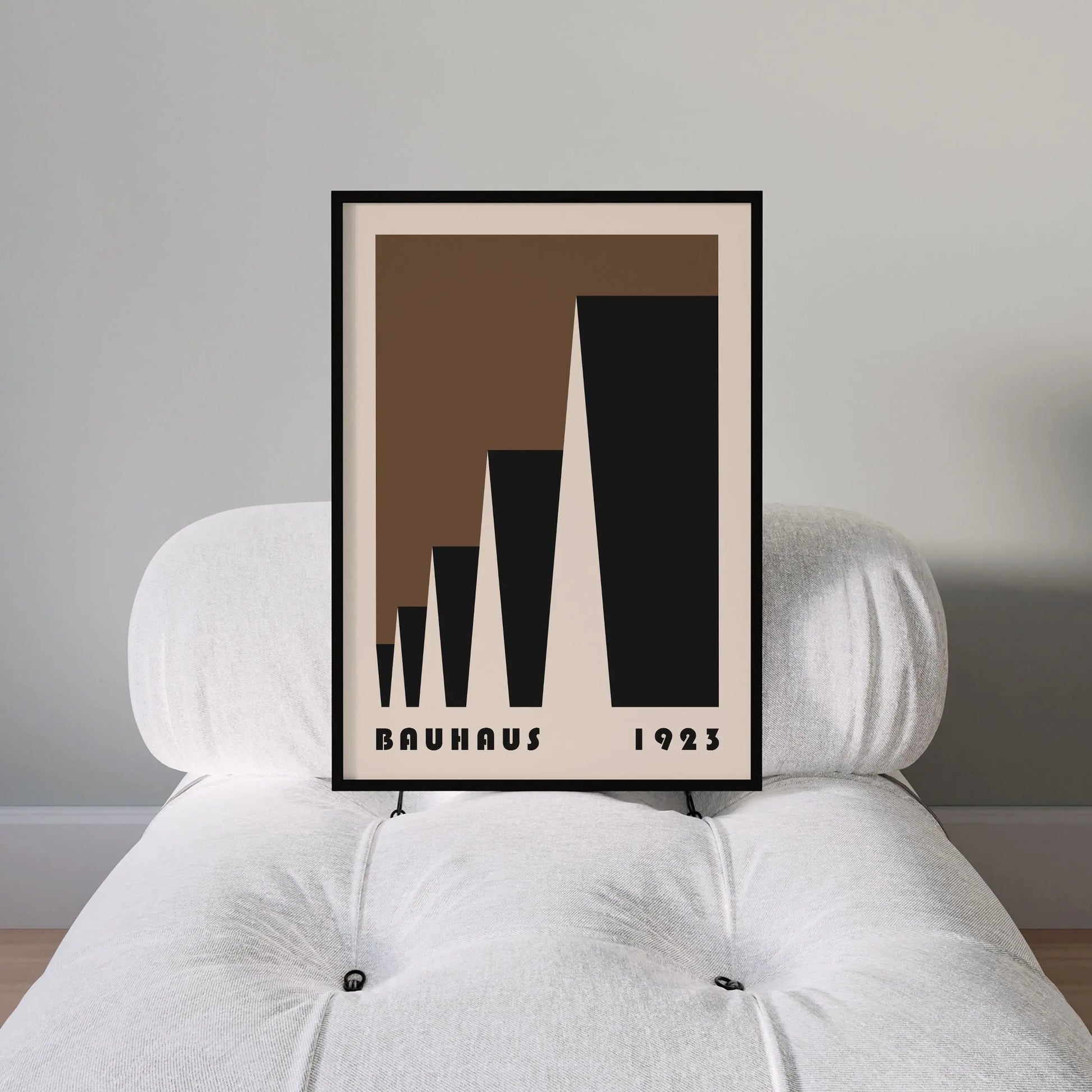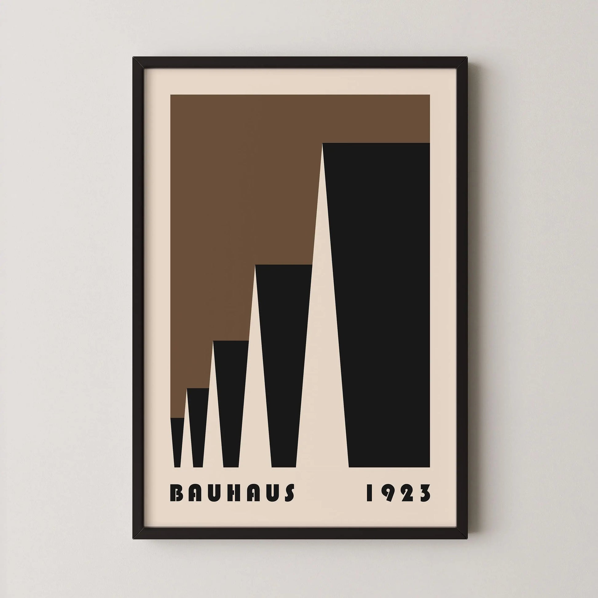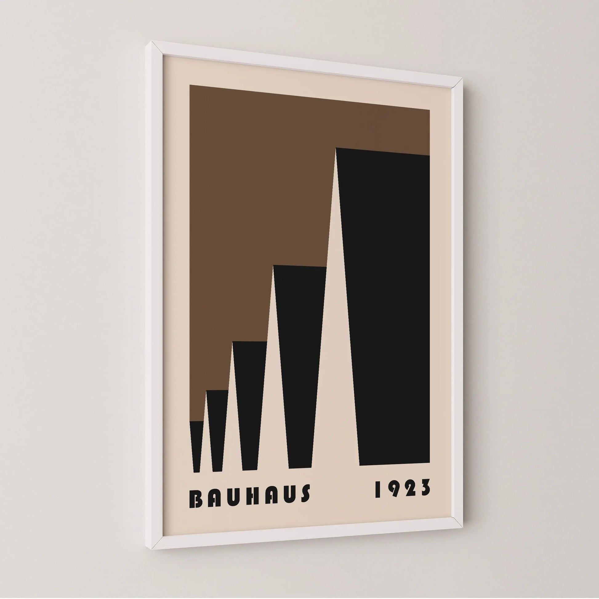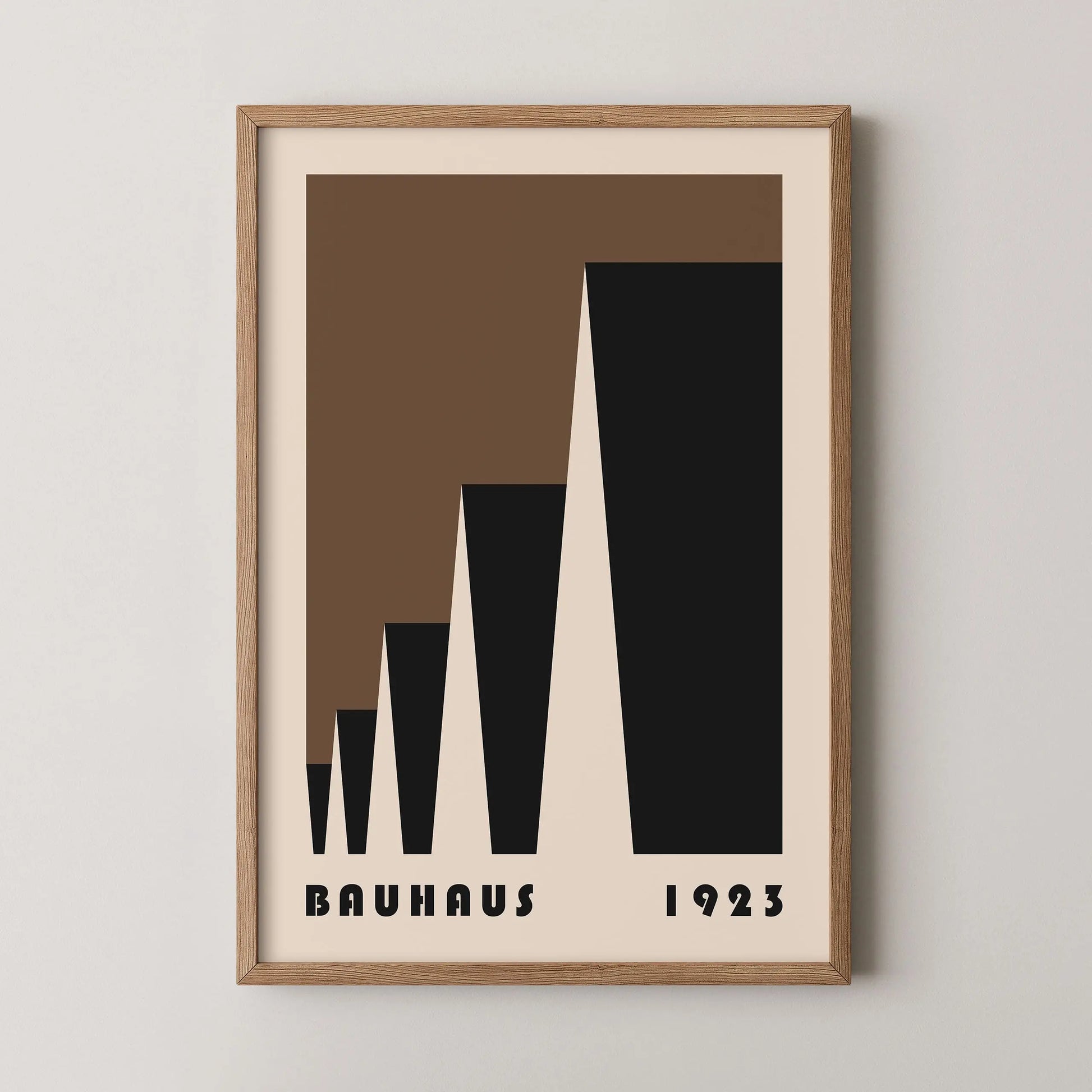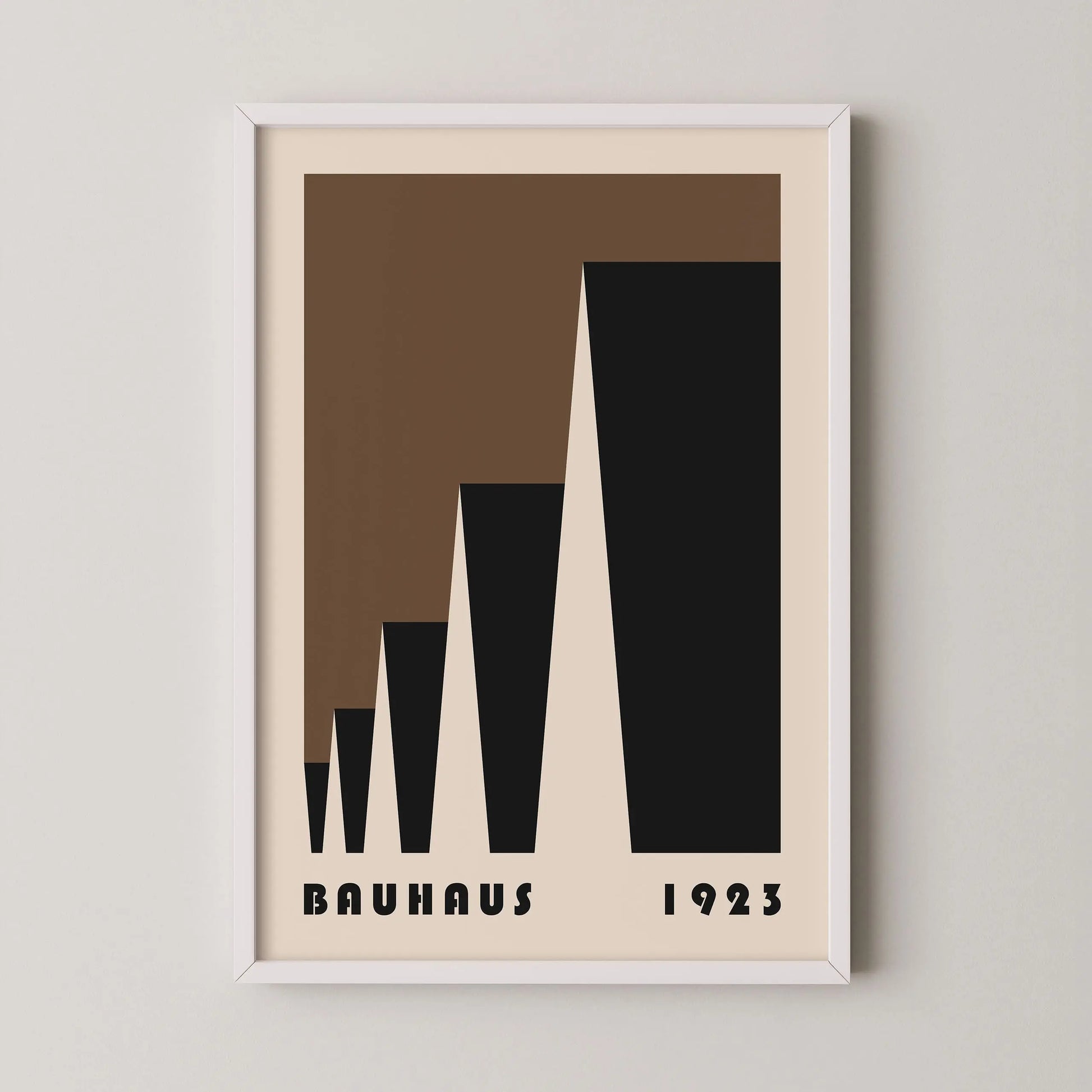 This poster Vintage brown Bauhaus color is composed of triangles put into laterally perspective on a beige background.