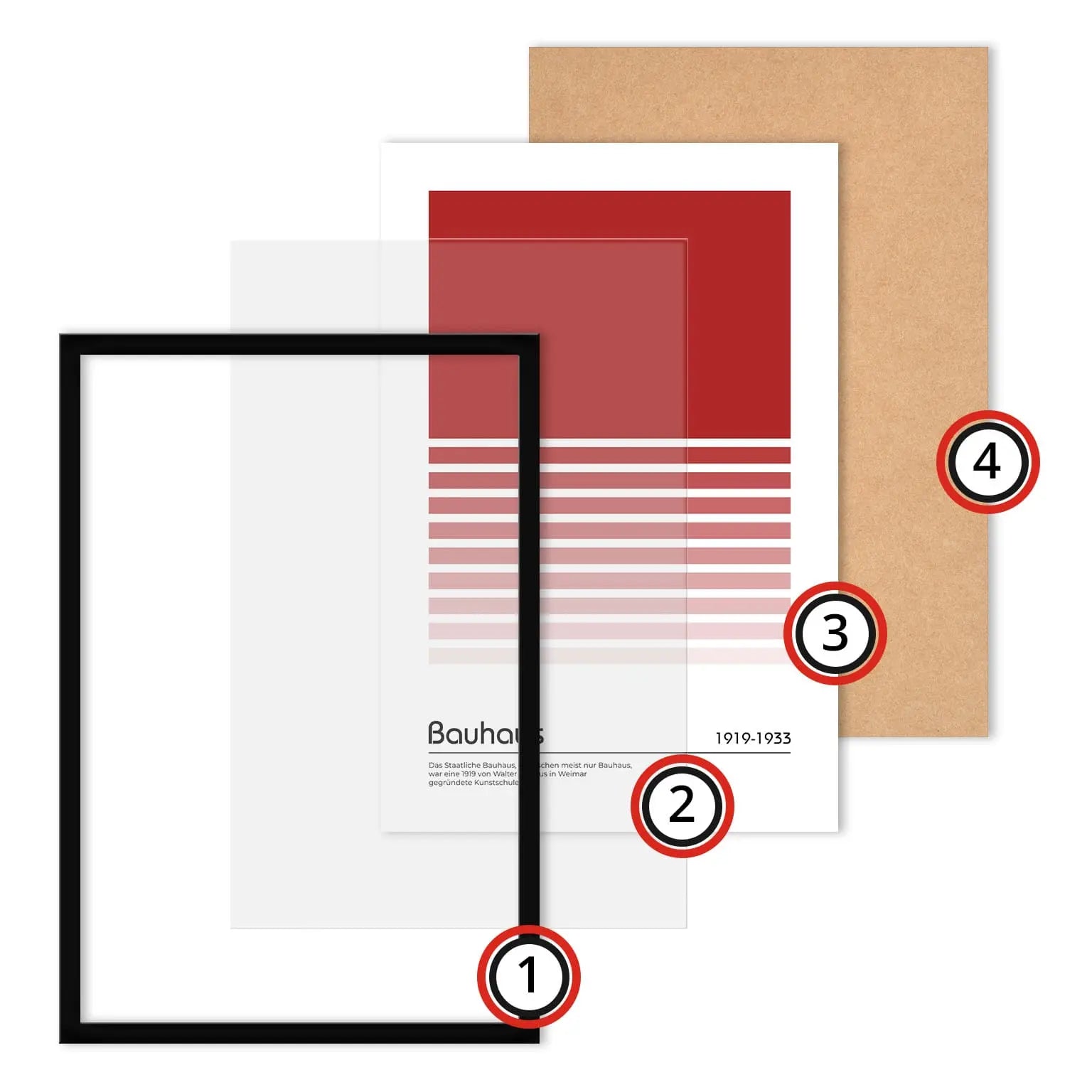 Our high-quality, heat-treated acrylic glass offers clarity equivalent to traditional glass and secure protection for your art posters. More resistant thanks to its characteristic flexibility, it is also 50% lighter, easier to handle and hang on all types of walls. Chemically produced from synthetic fibres, it filters out most of the natural ultraviolet rays, preserving the vibrancy of the colours of your works over the long term.