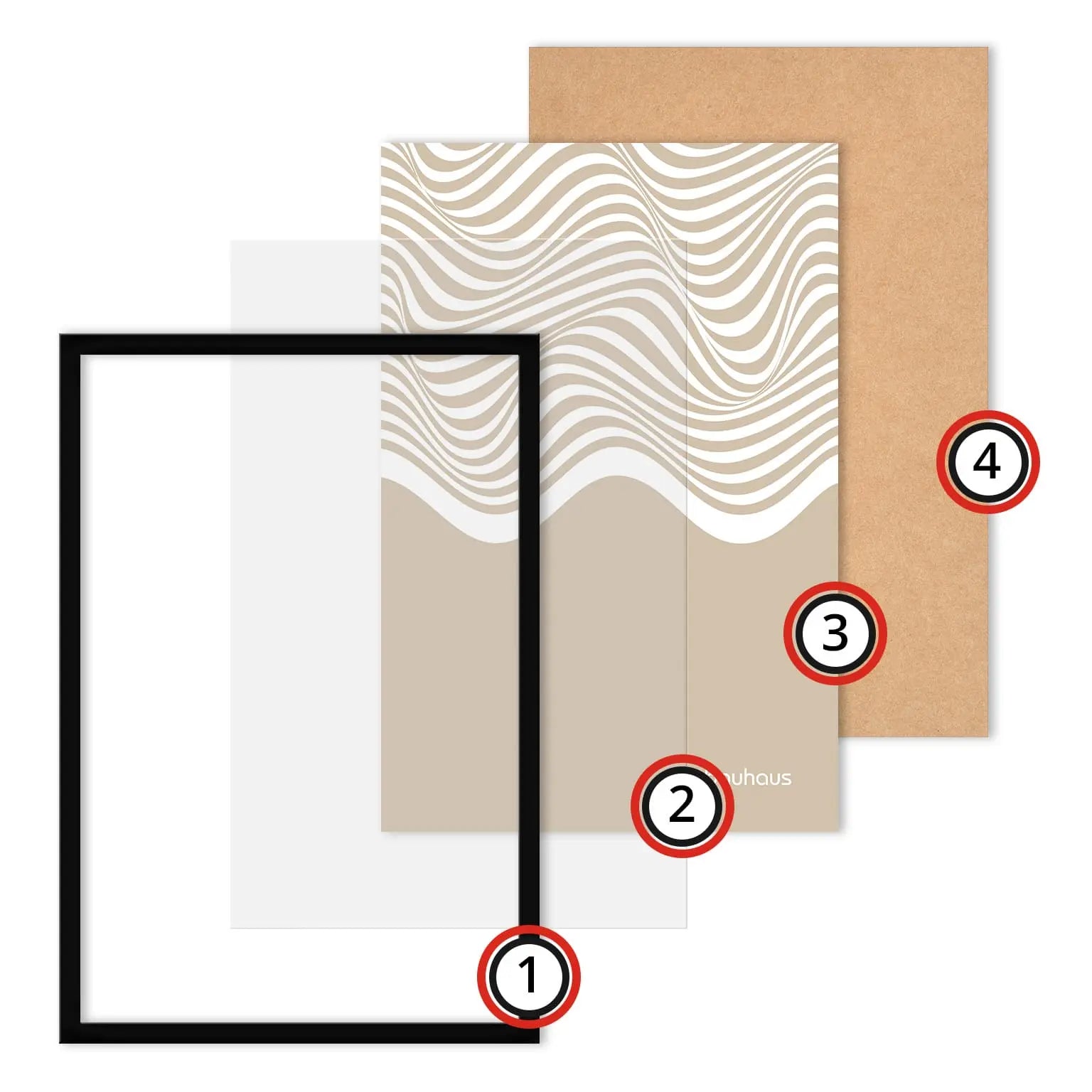 La parte posterior de cada marco está equipada para evitar que el polvo y la humedad entren en el interior. Duraderos, resistentes y elegantes, vienen listos para colgar. Nuestros procesos de fabricación, materias primas y embalajes de envío han sido seleccionados teniendo en cuenta las limitaciones medioambientales y garantizan la seguridad de su pedido durante el transporte.