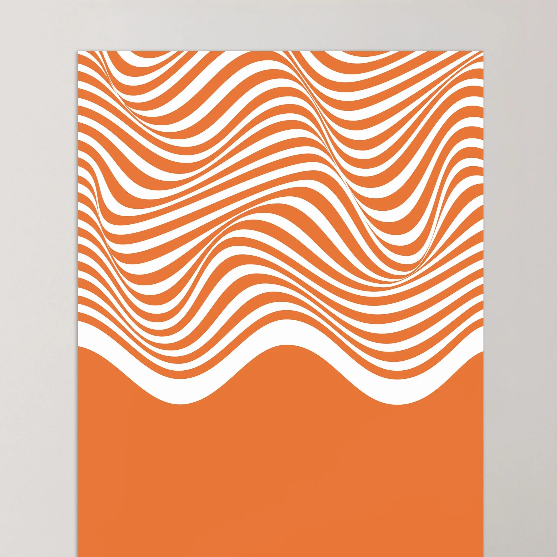 Este cartel Bauhaus está compuesto por líneas onduladas paralelas en contraste, dispuestas horizontalmente y que cubren la parte superior de la composición. Estas líneas forman curvas fluidas y continuas, generando una sensación de movimiento. La parte inferior está ocupada por un plano negro uniforme, creando un contraste marcado entre la zona gráfica dinámica y la superficie sólida.