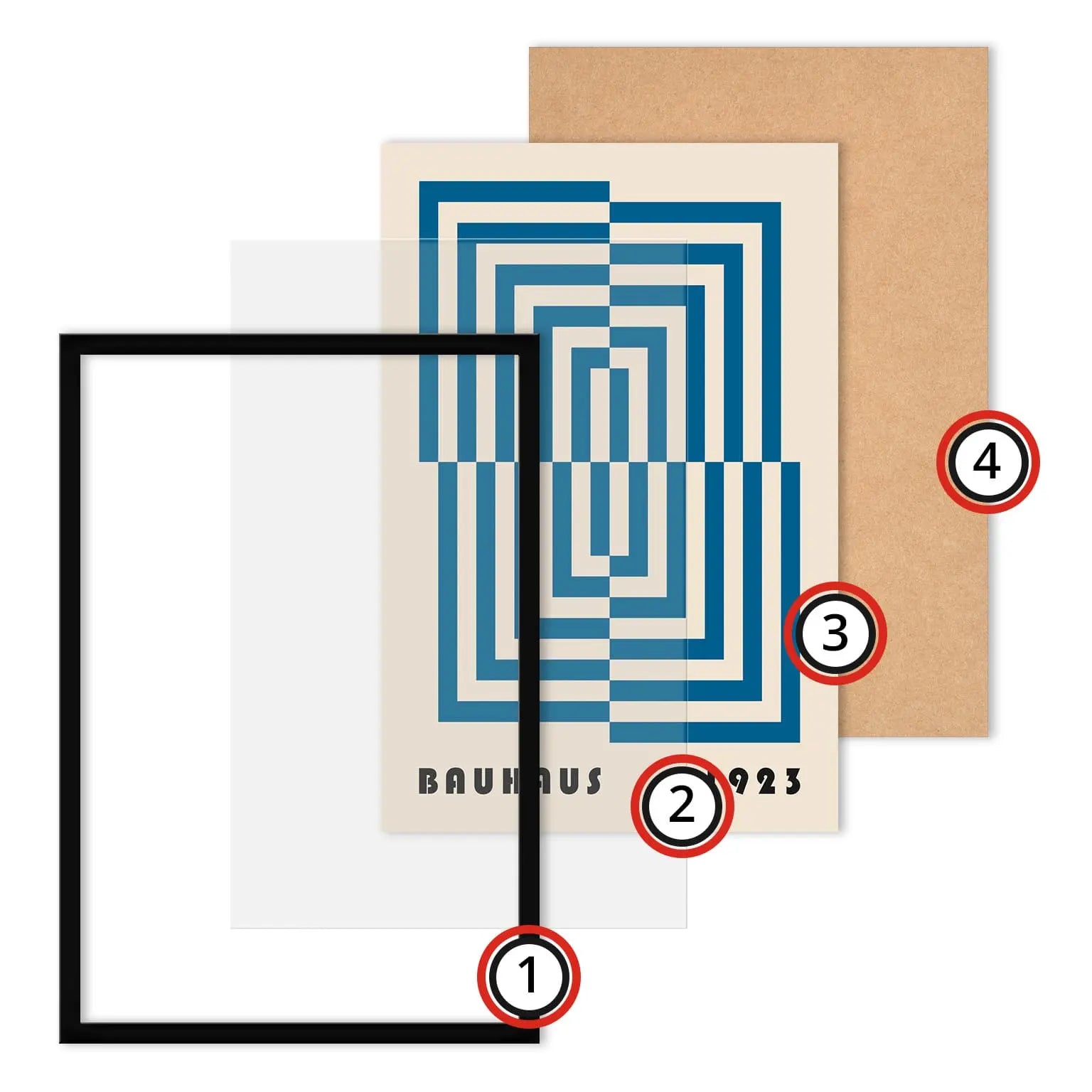 La parte posterior de cada marco está equipada para evitar que el polvo y la humedad entren en el interior. Duraderos, resistentes y elegantes, vienen listos para colgar. Nuestros procesos de fabricación, materias primas y embalajes de envío han sido seleccionados teniendo en cuenta las limitaciones medioambientales y garantizan la seguridad de su pedido durante el transporte.
