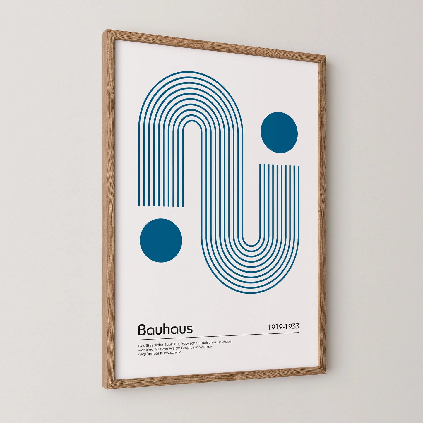 Póster geométrico minimalista de estilo Bauhaus en azul