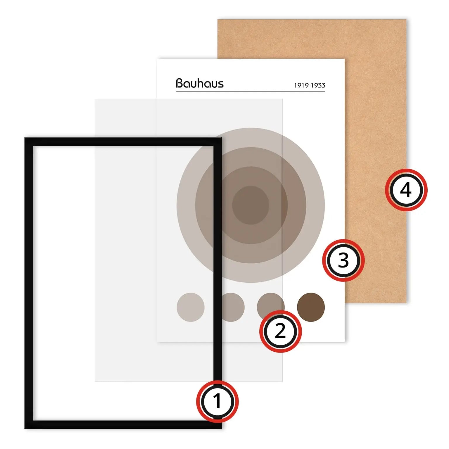 De achterkant van elk frame is zo bevestigd dat er geen stof en vocht naar binnen kan dringen. Ze zijn duurzaam, sterk en elegant en klaar om op te hangen. Bij het selecteren van onze productieprocessen, grondstoffen en verzendverpakkingen houden we rekening met de eisen die het milieu stelt. Zo garanderen we de veiligheid van uw bestelling tijdens het transport.